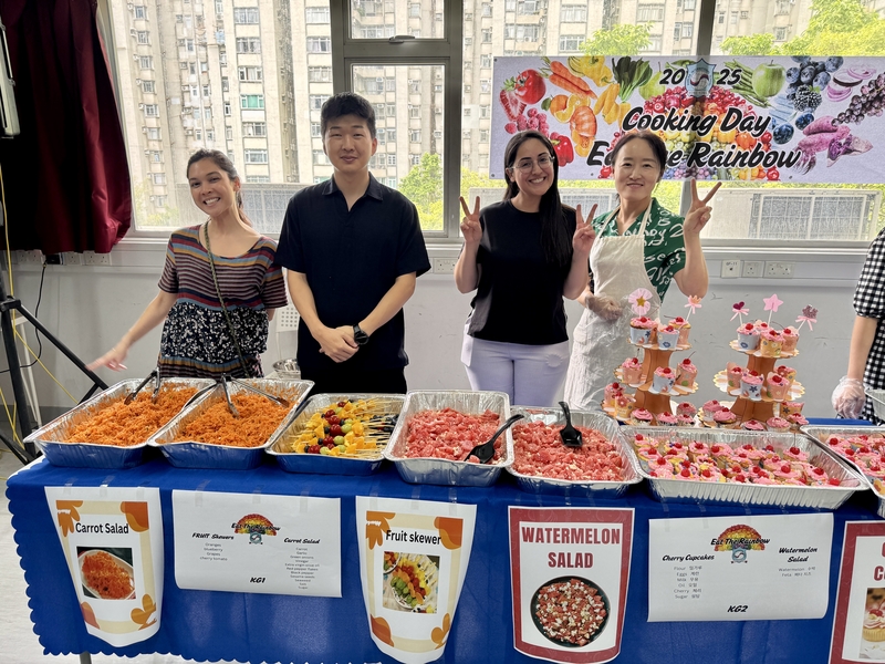 점심시간에는 학생들이 만든 ‘무지개 음식’을 한데 모아 함께 나누는 특별한 시간을 가졌다. 각 학년이 정성껏 준비한 요리를 서로 맛보며 음식에 대한 이해를 넓히고, 함께 만든 음식을 나누는 즐거움을 통해 공동체 의식과 협동심을 키웠다. 이 행사는 홍콩한국국제학교의 오랜 연례행사 중 하나로, 학생들이 직접 만든 음식을 통해 성취감을 느끼고 건강한 식문화를 경험하는 소중한 기회가 되고 있다.