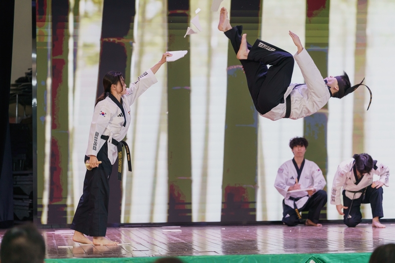 음악과 태권도의 역동적인 동작이 어우러진 무대는 한국의 전통과 현대 문화가 조화를 이루는 모습을 보여주며 깊은 인상을 남겼다.