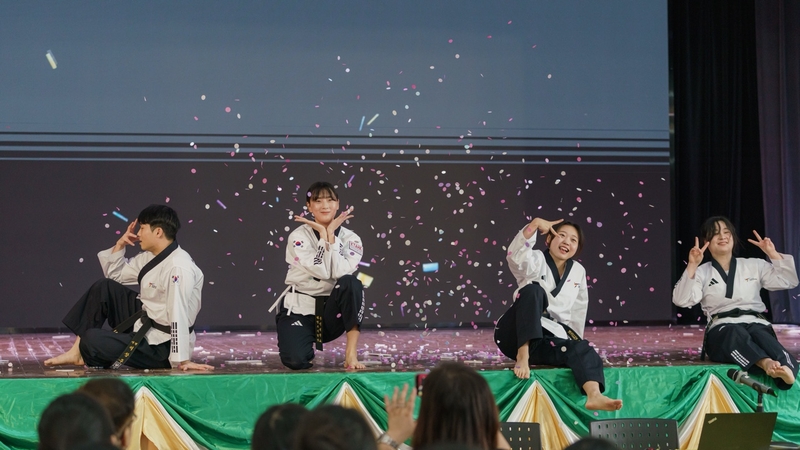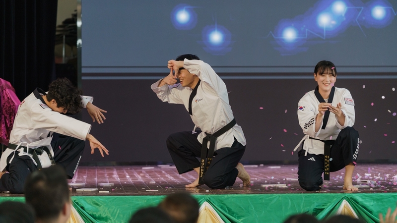 시범은 전통적인 품새와 격파 시연뿐만 아니라, 현대적 감각을 접목한 퍼포먼스로 구성되어 눈길을 끌었다. 특히 최근 넷플릭스를 통해 전 세계적인 인기를 끈 〈케이팝 데몬 헌터스〉 OST를 활용한 태권댄스 공연은 학생들의 뜨거운 호응을 얻으며 행사 분위기를 한층 고조시켰다.