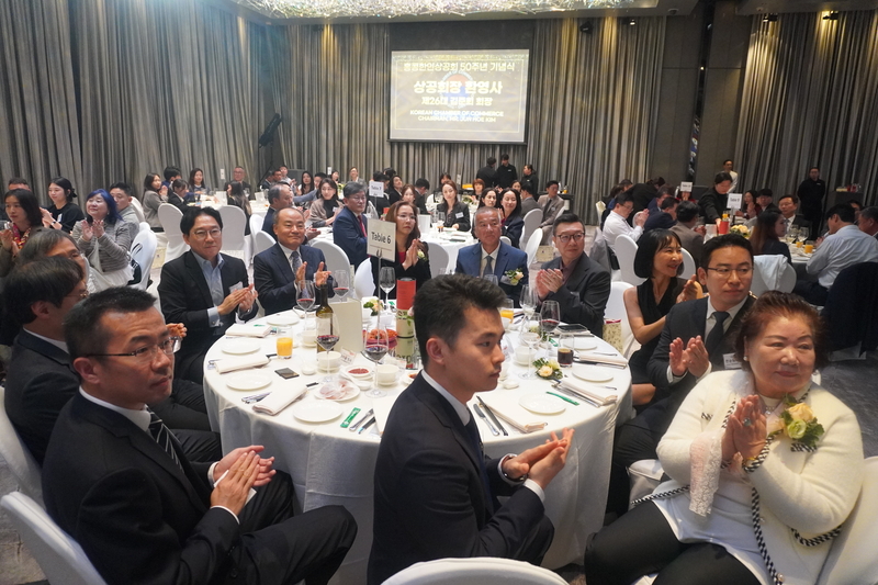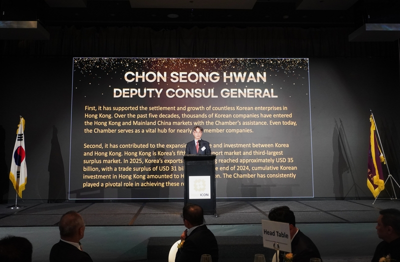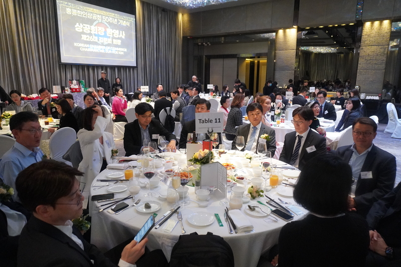 천성환 총영사 대리는 축사에서 홍콩한인상공회의 반세기 동안의 세 가지 주요 역할을 치하했다. 첫째, 약 3천 개의 한국 기업이 홍콩과 중국 시장에 진출할 수 있도록 지원하고, 현재 약 200개 회원사의 구심점이 되어왔다는 점. 둘째, 한국과 홍콩 간 교역과 투자 증진에 기여했다는 점을 언급하며, "홍콩은 한국의 5대 수출 시장이자 3대 흑자 시장"이라고 강조했다. 셋째, 홍콩 내 한국 커뮤니티 위상을 높이고 현지 사회와의 교류 및 CSR 활동을 지속해온 공로를 높이 평가했다. 또한 총영사관은 기업 지원 협의회 등을 통해 회원사의 애로사항 해결과 협업 사업 발굴에 적극 협력하겠다고 밝혔다.