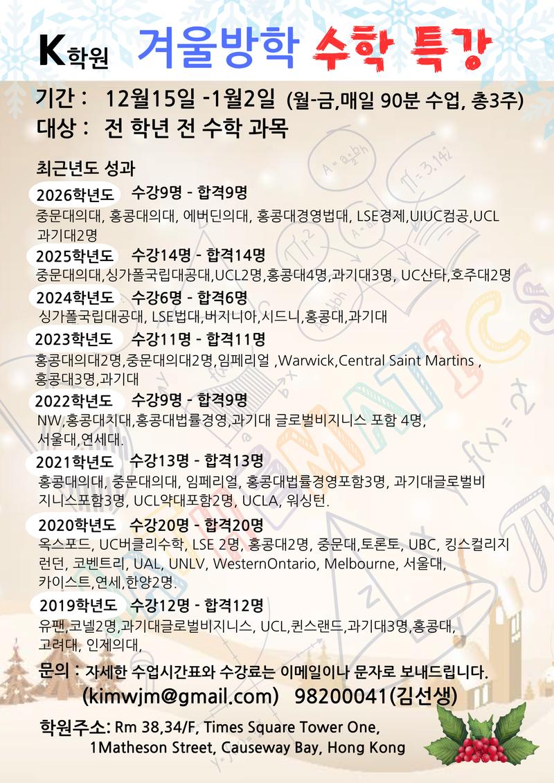 [K학원 김선생 수학] 2025 겨울방학 수학특강