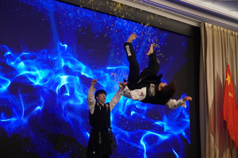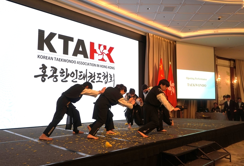 식전행사로 진행된 홍콩한인태권도협회의 절도있는 태권도 시범은 대한민국의 국기이니만큼 참석자들로 하여금 끊임없는 탄성을 자아나게 하였다.