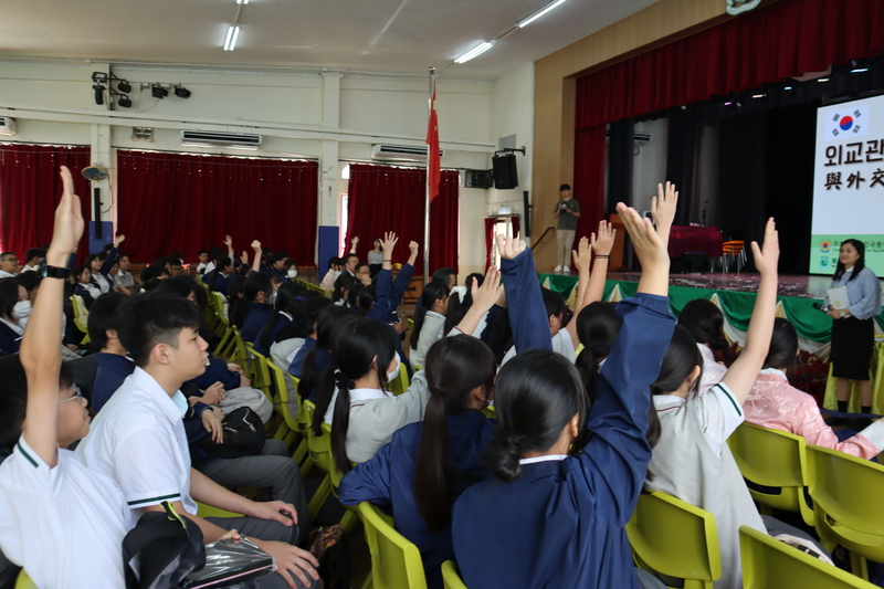 주홍콩대한민국총영사관(이하 총영사관)은 9월 5일 (금요일) 11:00-13:30 간 Kwun Tong 소재 ‘무광영어중고등학교’를 방문하여 “외교관과의 대화” 행사를 개최하였다.