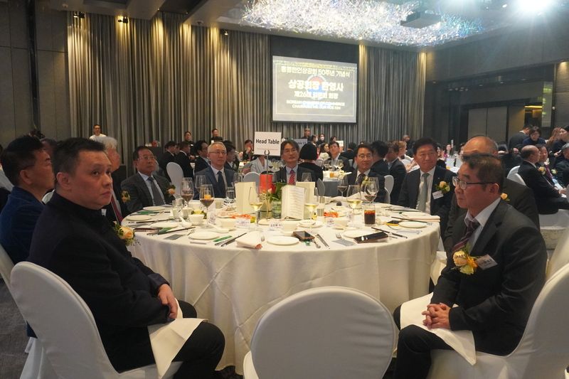 천성환 총영사 대리는 축사에서 홍콩한인상공회의 반세기 동안의 세 가지 주요 역할을 치하했다. 첫째, 약 3천 개의 한국 기업이 홍콩과 중국 시장에 진출할 수 있도록 지원하고, 현재 약 200개 회원사의 구심점이 되어왔다는 점. 둘째, 한국과 홍콩 간 교역과 투자 증진에 기여했다는 점을 언급하며, "홍콩은 한국의 5대 수출 시장이자 3대 흑자 시장"이라고 강조했다. 셋째, 홍콩 내 한국 커뮤니티 위상을 높이고 현지 사회와의 교류 및 CSR 활동을 지속해온 공로를 높이 평가했다. 또한 총영사관은 기업 지원 협의회 등을 통해 회원사의 애로사항 해결과 협업 사업 발굴에 적극 협력하겠다고 밝혔다.
