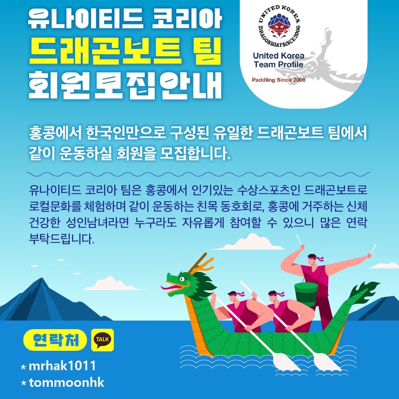 [유나이티드 코리아] 드래곤보트 팀 회원모집안내